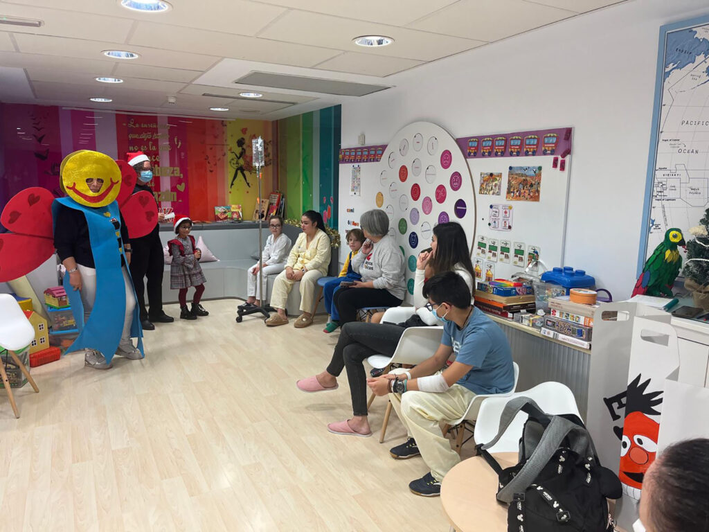 Acompañados por el duende Ventura y la pequeña Aitana, la asociación entregó las esferas «Pilco Paco», tarjetas con mensajes de esperanza y enseñó técnicas de bienestar a las familias.